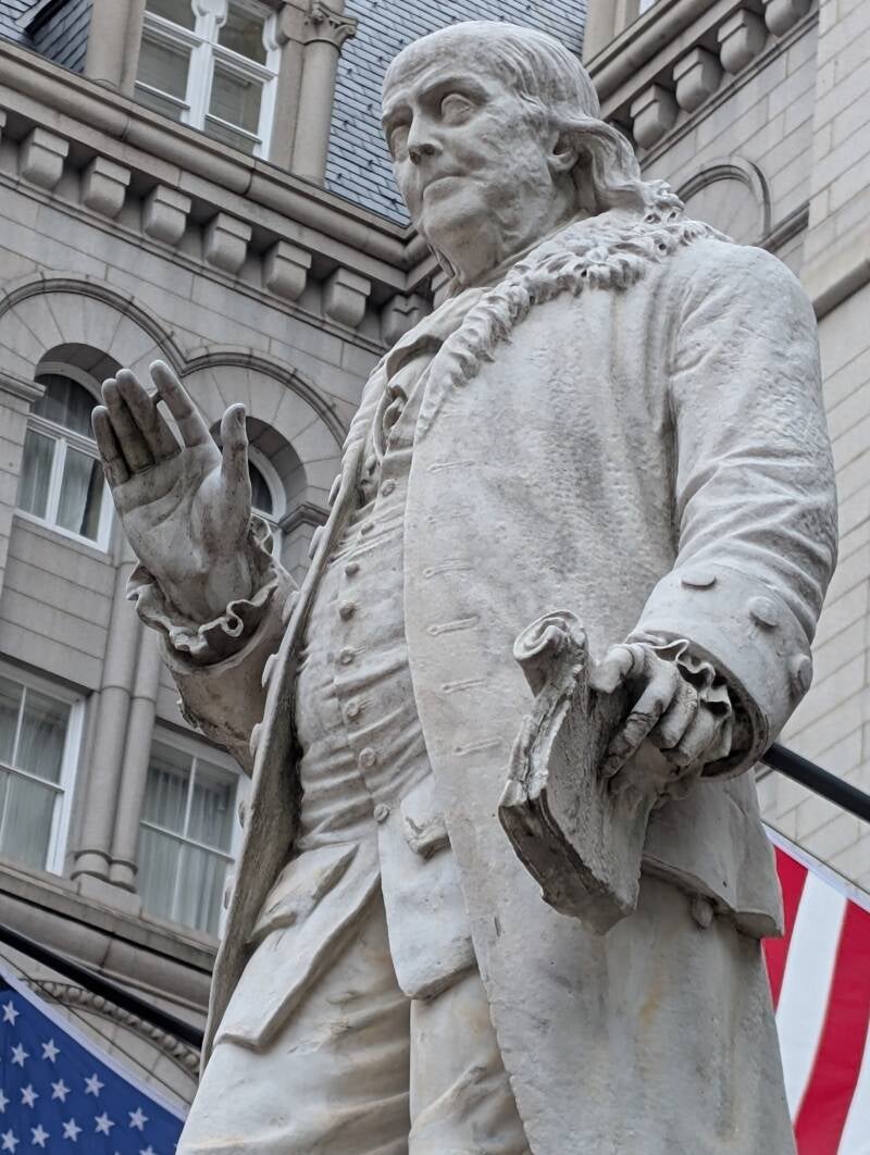Памятник Бенджамину Франклину - гениальному самоучке, изобретателю громоотвода, одному из отцов-основателей США.