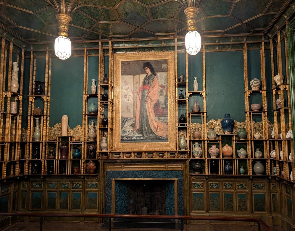 Павлиний зал был оформлен в доме лондонского аристократа. Это прекрасный образец дизайна, возникшего при соприкосновении европейской и китайской культур. Ныне зал находится в Вашингтоне.