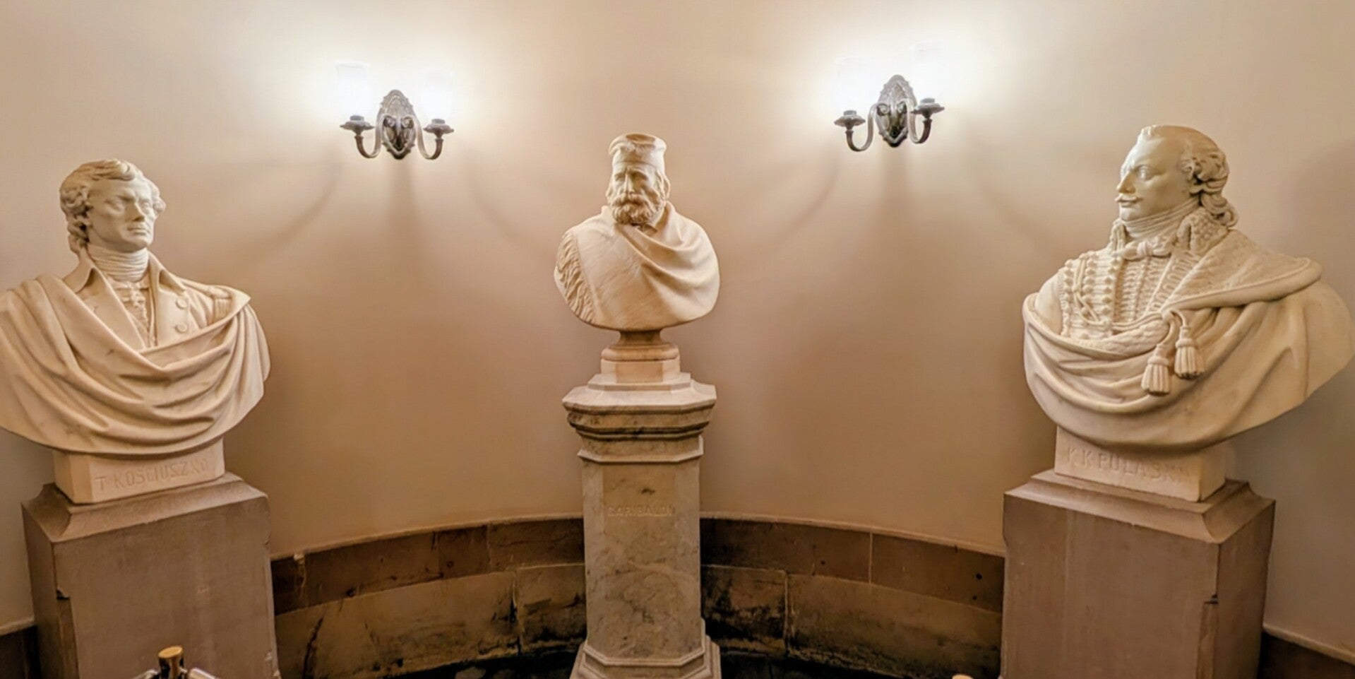 В Капитолии выставлены бюсты Тадеуша Костюшко, Джузеппе Гарибальди и Казимира Пулавского - борцов за свободу своих народов.